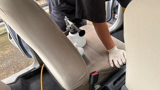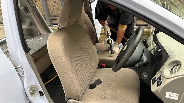 例えばシートの隙間やフロアマットの下など、自分では手が届きにくい場所もプロならではの道具と技術で徹底的に清潔に仕上げます。